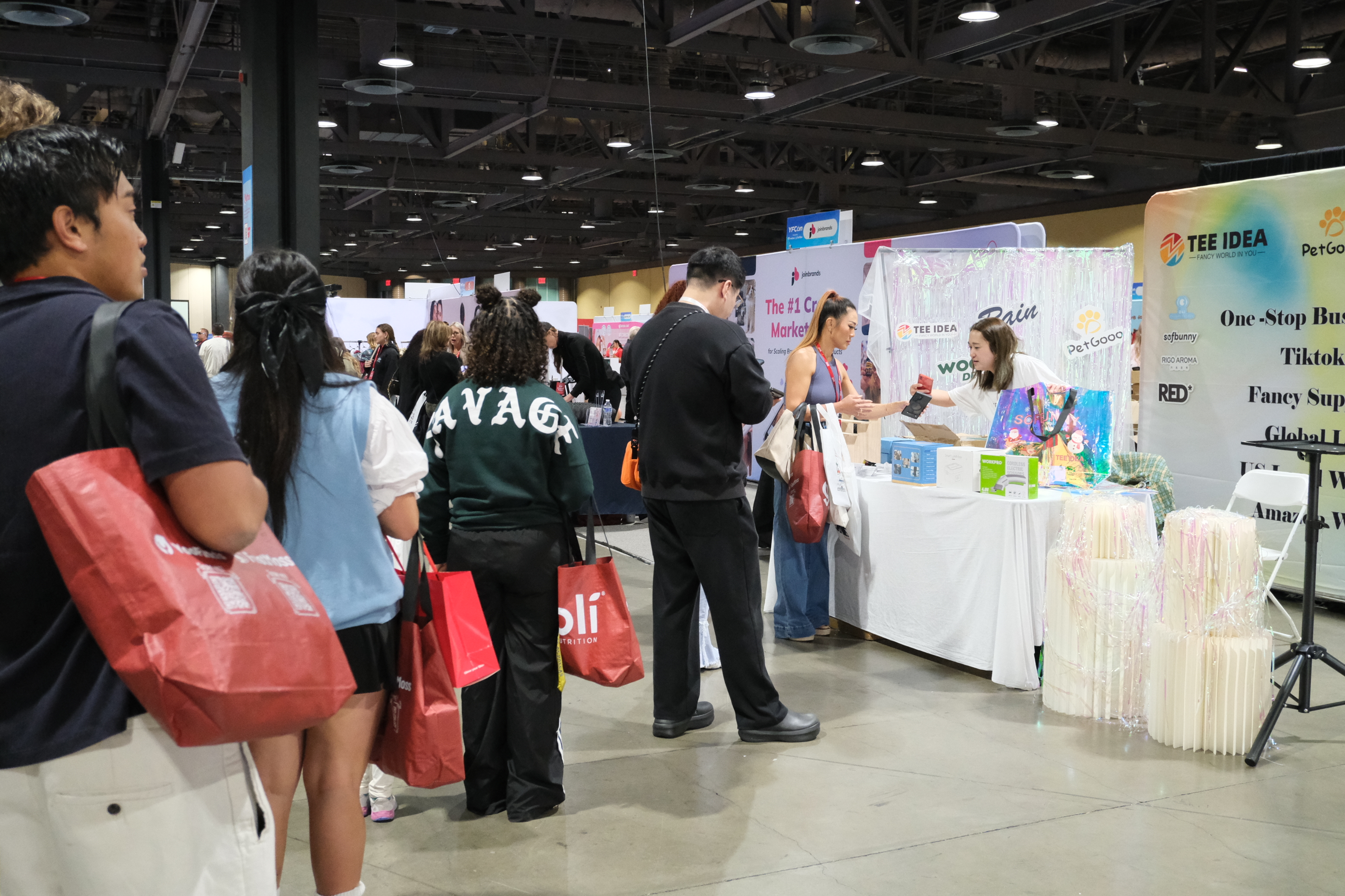 由 YooFinds 主办、FastMoss 协办的 YFCon 美国短视频 & 直播生态达人线下选品展览会 已于 10 月 15–16 日在洛杉矶长滩会展中心举行。我们在现场以 TEE IDEA · Rain · WOOT DEAL 联合展出的形式亮相,围绕“一站式业务服务、TikTok MCN、Fancy 供应链、全球物流、美国本地仓”等能力进行集中展示,并与现场达人与品牌进行深度交流。